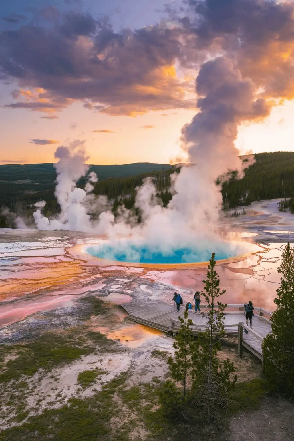 Không thể không nhắc đến Old Faithful trong danh sách các điểm đến phải dành thời gian khám phá khi đến Yellowstone. Đây là mạch nước phun nổi tiếng nhất của công viên, nổi bật với khả năng phun trào đều đặn mỗi khoảng 90 phút một lần, tạo ra những cảnh tượng ngoạn mục, uy nghi và độc đáo.