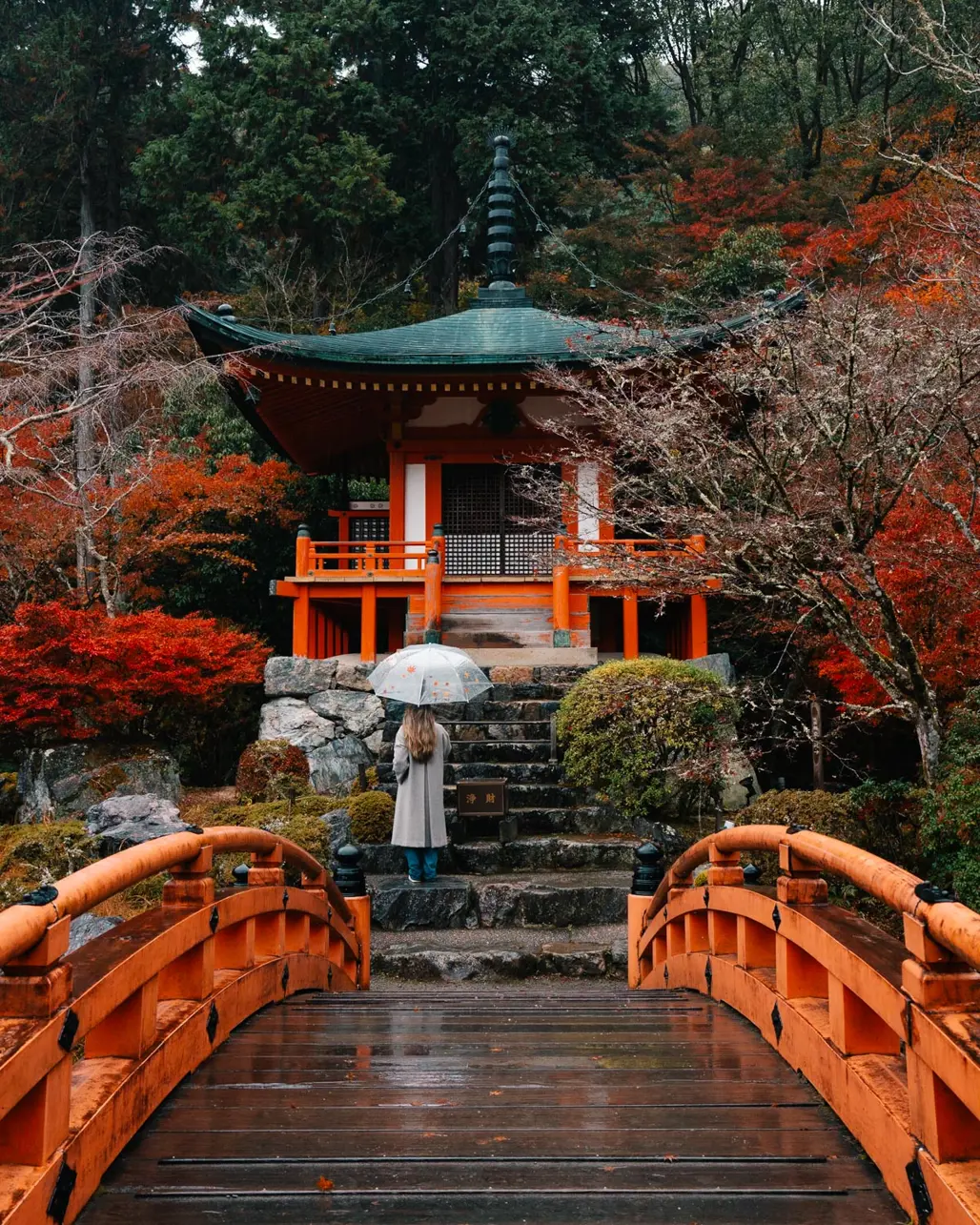 Yếu tố làm nên sức hấp dẫn của du lịch Nhật Bản mùa thu chính là các di tích lịch sử, cố đô Kyoto, nổi bật với hàng trăm đền chùa cổ kính và các khu vườn truyền thống. Vào mùa lá đỏ, các con đường cổ kính như Arashiyama, Philosopher's Path, hoặc quanh các cung điện chính thức phủ một lớp áo mới quyến rũ của màu đỏ, vàng.