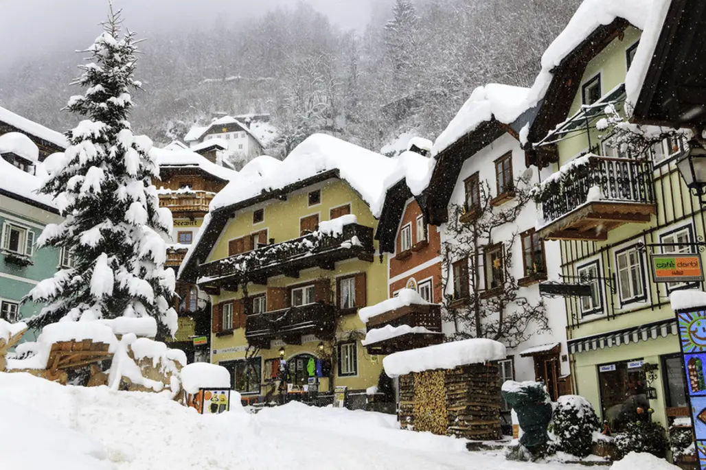 Nằm nép mình bên hồ Hallstätter See, ngôi làng nhỏ của nước Áo mang vẻ đẹp yên bình quanh năm, nhưng khi tuyết rơi, nơi đây như khoác lên lớp áo trắng tinh khôi, biến thành bức tranh mùa đông đầy mê hoặc. Không khí lạnh trong veo, những mái nhà phủ tuyết và làn sương mờ bảng lảng khiến du khách như lạc vào thế giới cổ tích giữa núi rừng.