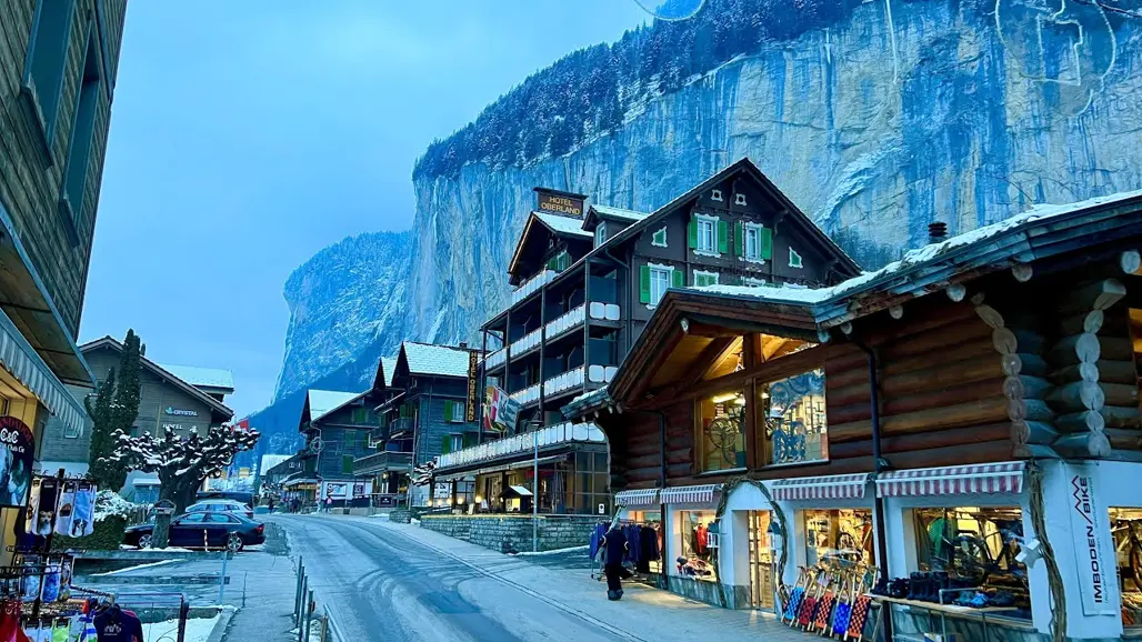 Không khí trong lành, mùi gỗ cháy ấm cúng từ các nhà nghỉ, cùng những mái nhà phủ tuyết, tạo cảm giác bình yên và thân thuộc cho du khách. Thưởng thức đặc sản địa phương trong khung cảnh này càng làm tăng thêm cảm giác thú vị của hành trình du lịch Châu Âu mùa đông tại Lauterbrunnen.