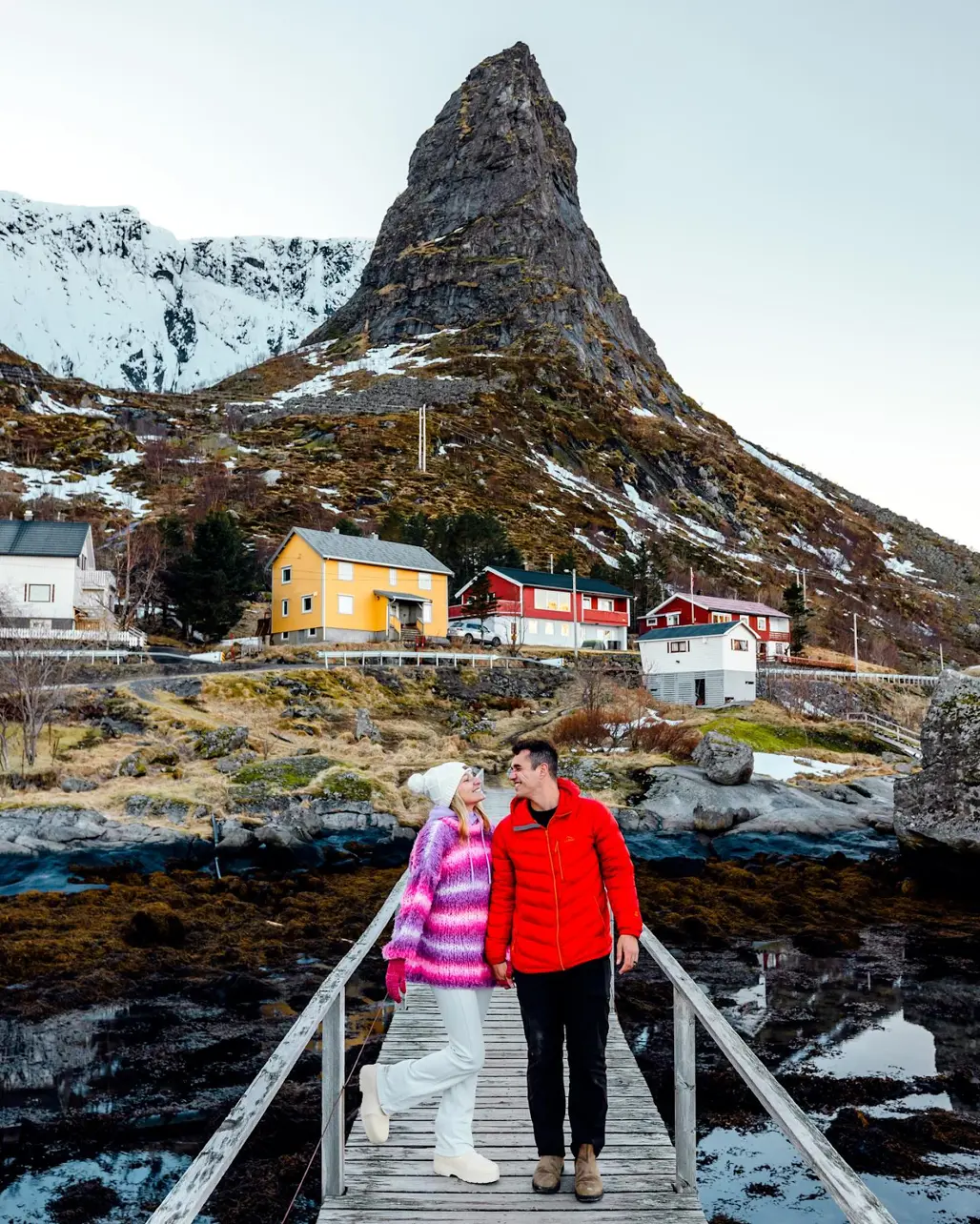 Hamnøy – ngôi làng cổ kính với những ngôi nhà đỏ nép mình bên núi tuyết – là địa điểm chụp ảnh mang đậm chất Bắc Âu. Hãy tận dụng ánh sáng ban ngày ngắn ngủi để chụp bình minh, hoàng hôn và rèn kỹ năng nhiếp ảnh mùa đông.