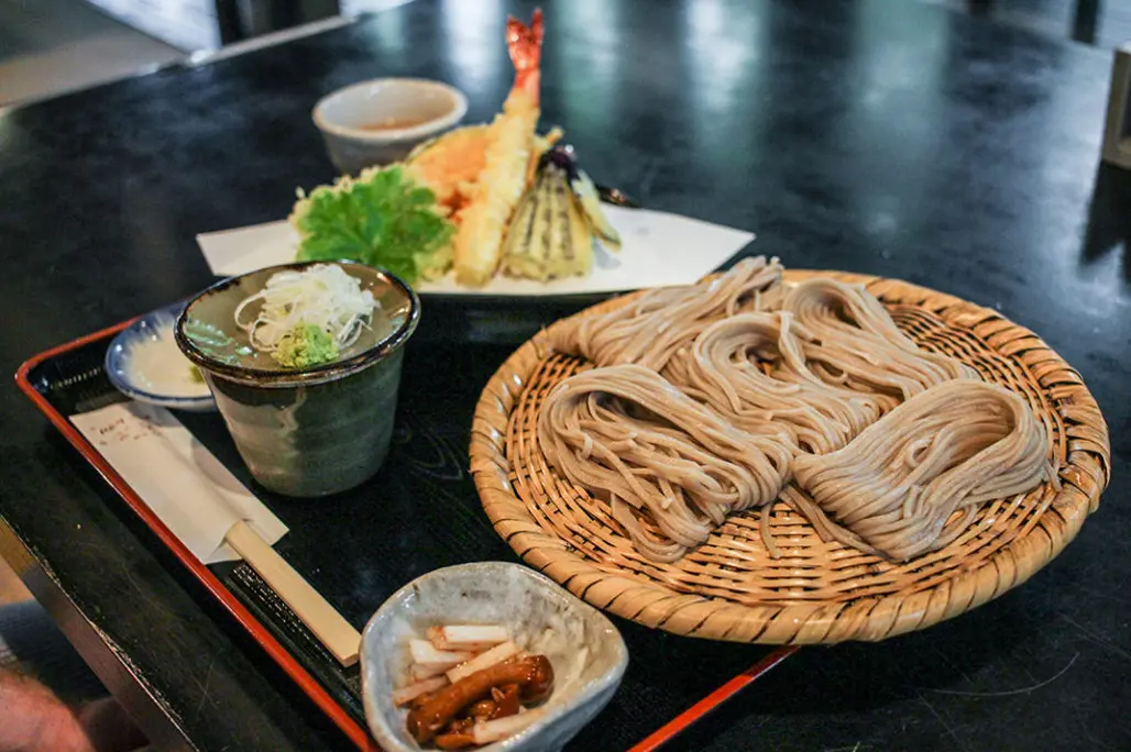 Một trong những món ăn đặc trưng nhất tại Nagano là mì soba – loại mì làm từ bột kiều mạch gắn liền với truyền thống địa phương. Sợi mì thường được chế biến thủ công, có độ dai vừa phải, hương vị nhẹ nhàng nhưng đậm chất thiên nhiên, thường được dùng kèm nước dùng thanh ngọt hoặc kết hợp cùng tempura.