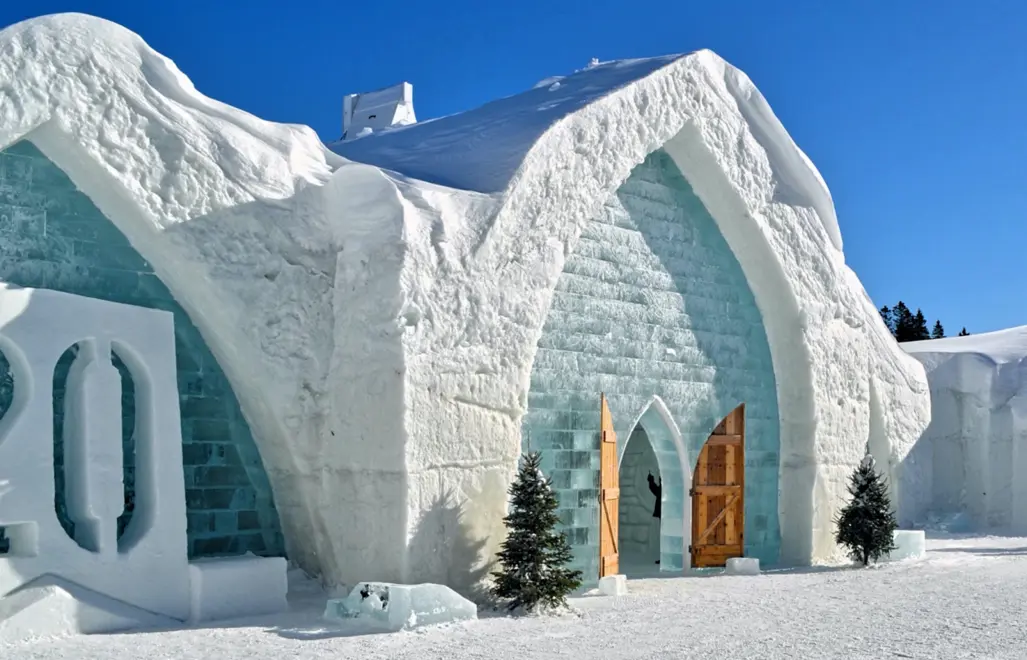 Dù nằm ngoài khu vực Châu Âu, ta vẫn không thể bỏ qua Hôtel de Glace ở Quebec, Canada – một trong những khách sạn băng đẹp nhất thế giới. Với hơn hai thập kỷ xây dựng, khách sạn này trở thành biểu tượng của sự sáng tạo trong nghệ thuật mùa đông, thu hút du khách từ khắp nơi và đem lại cảm xúc đầy thử thách.