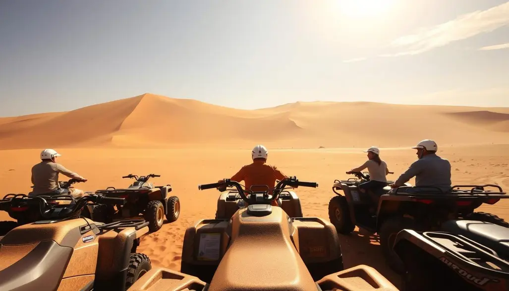 Đối với những người thích mạo hiểm và cảm giác mạnh, trải nghiệm xe địa hình qua các tuyến đường bị bào mòn, trượt qua những dãy cát dốc sẽ mang lại cảm giác phấn khích tột độ. Di chuyển bằng xe 4x4 trên đồi cát cao, cảm nhận sức mạnh của máy móc trong từng cú tăng tốc, đắm chìm trong không gian vô tận của sa mạc, là một trong những hoạt động được giới trẻ đặc biệt yêu thích.