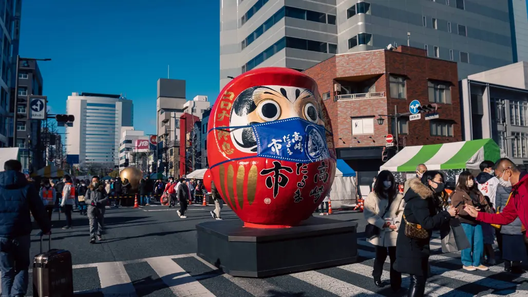 Lễ hội Daruma cũng là một trong các lễ hội lớn khi du lịch Nhật Bản Tết. Tại các tỉnh như Takasaki, Nagoya, hay Hiroshima, du khách thường mua tượng Daruma – biểu tượng của may mắn, thành công. Người Nhật tin rằng cầu nguyện tại các lễ hội này sẽ mang lại vận may, hạn chế xui xẻo trong năm mới. Đặc biệt, bên cạnh việc mua tượng Daruma, người ta còn viết những mong muốn và ước nguyện của mình trên mặt tượng để gửi gắm vào đó.