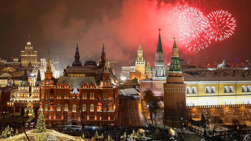 Ngắm Điện Kremlin, thánh đường Vasily rực rỡ trong đêm giao thừa