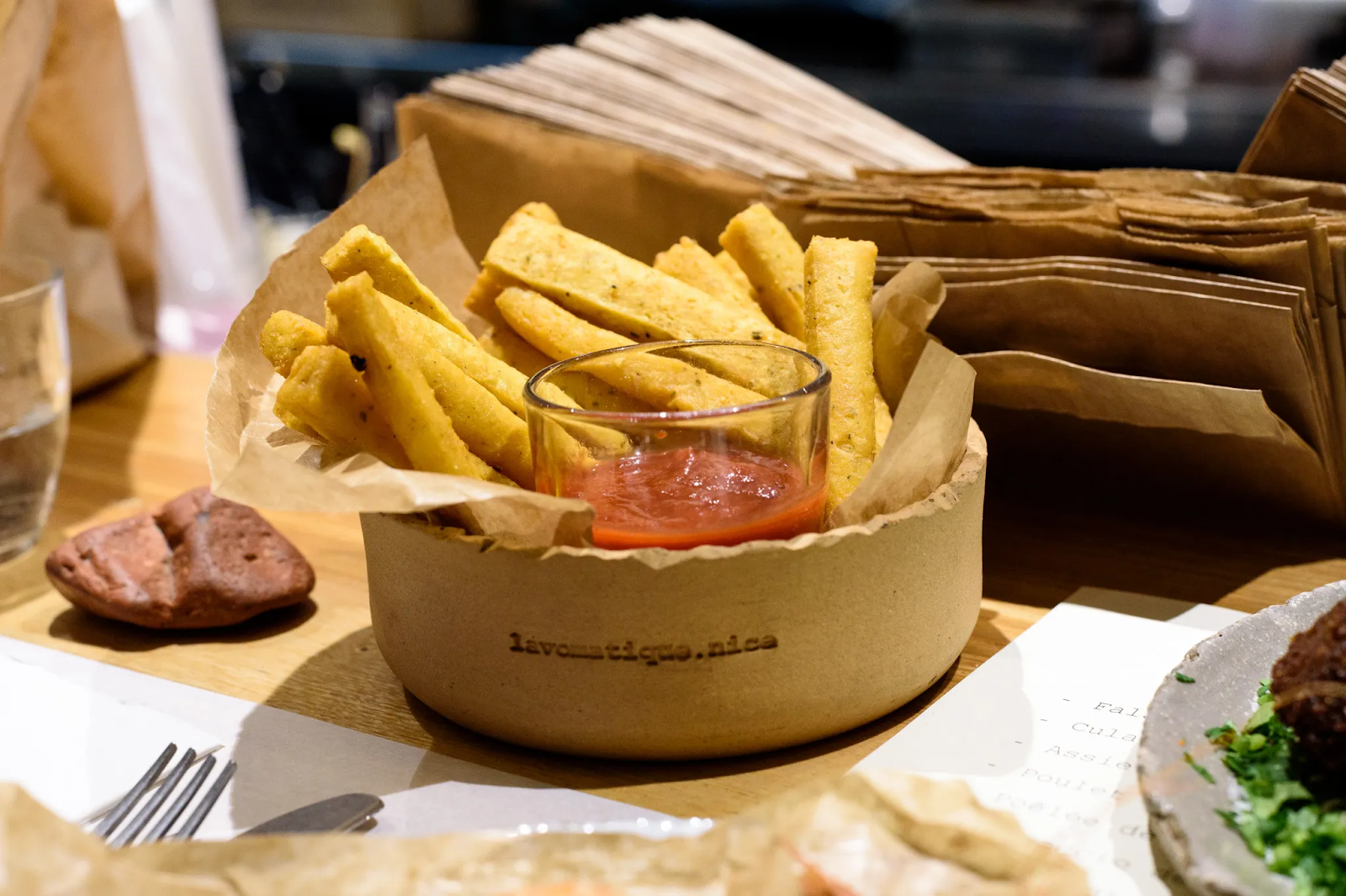 Điểm nhấn thứ hai của ẩm thực Marseille chính là Panisse, loại bánh làm từ bột đậu chickpea, trộn cùng các gia vị, rồi nấu chín, sau đó cắt thành miếng vuông và chiên giòn. Món này vừa giữ được hương vị tự nhiên của đậu, lại mang đến cảm giác giòn rụm bên ngoài, mềm mại bên trong, phù hợp để dùng như một món khai vị hoặc mồi nhậu tuyệt vời.