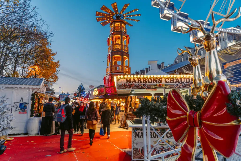 Chợ mùa đông Tuileries Garden: Kéo dài đến đầu tháng 1, sôi động với các gian hàng thủ công, đồ ăn nóng, rượu vang nóng (vin chaud)
