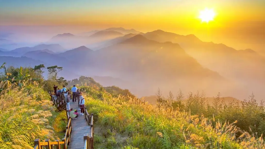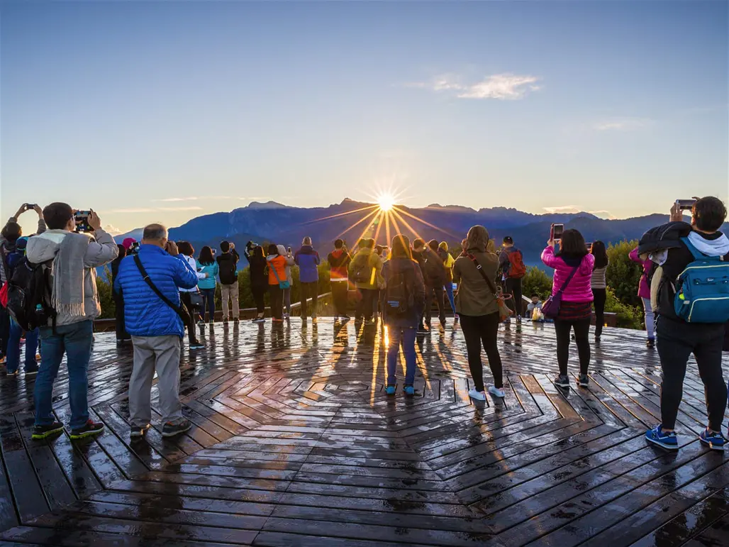 Một trải nghiệm đặc biệt khi du lịch Đài Loan tại Alishan mùa xuân đó chính là săn biển mây và chiêm ngưỡng bình minh trên đỉnh núi. Từ các điểm ngắm cảnh, du khách có thể thấy biển mây bao phủ cả một vùng trời, tạo cảm giác như lạc vào chốn thần tiên. Đặc biệt, lúc bình minh ló dạng, ánh sáng vàng rực rỡ chiếu xuống biển mây, soi rọi những tầng mây, tạo nên khung cảnh kỳ ảo, huyền hoặc.