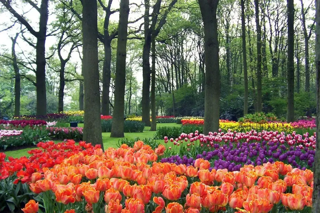 Trong những ngày này, toàn bộ diện tích hơn 32 ha của vườn hoa sẽ khoác lên mình chiếc áo mới rực rỡ của hàng triệu bông tulip, cùng các loại hoa khác như thủy tiên, crocus, đài hoa, và nhiều loại khác. Thời điểm này thích hợp để du khách tham gia các tour gian hàng hoa, chụp ảnh nghệ thuật, hoặc tham gia các lễ hội sắc màu diễn ra sôi động tại đây.