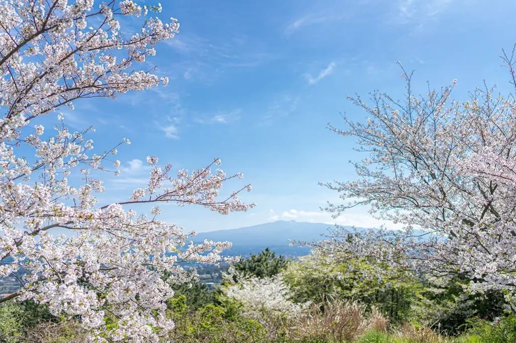 Jeju, hòn đảo nổi tiếng của Hàn Quốc nổi bật với khí hậu ôn hòa khiến hoa anh đào nở sớm hơn so với các nơi khác. Đến đây, du khách có thể hòa mình vào không khí trong lành, tận hưởng cảnh sắc thiên nhiên tươi đẹp, hoa anh đào khoe sắc trên những ngọn đồi và ven biển.