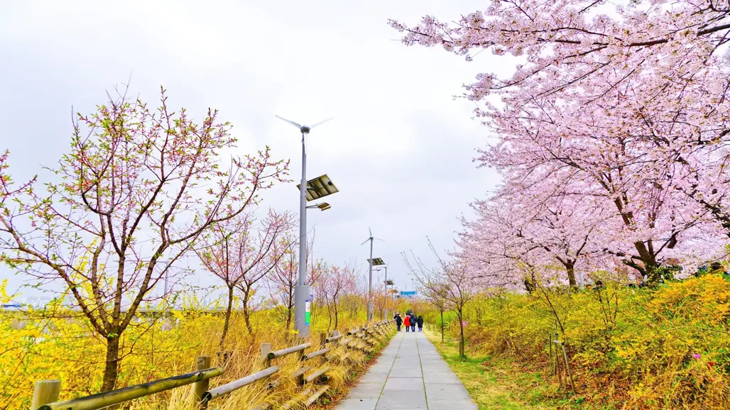 Điều đặc biệt của du lịch Hàn Quốc hoa anh đào tại đây chính là sự kết hợp giữa vẻ đẹp thiên nhiên và kiến trúc đương đại, làm cho cảnh vật nơi đây trở thành một điểm đến lý tưởng để thư giãn, chụp ảnh và tận hưởng sự yên tĩnh của mùa xuân.