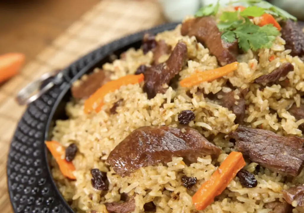 Cơm polo là món ăn truyền thống của người Trung Á, bao gồm cơm rang cùng gia vị, thịt hoặc rau quả. Đặc biệt, mỗi vùng có công thức riêng, mang đến sự đa dạng và phong phú trong cách chế biến. Cơm polo khi ăn cùng với các xiên thịt nướng hoặc bánh naan tạo thành một bữa ăn hoàn chỉnh, đủ để làm hài lòng khẩu vị của mọi người.