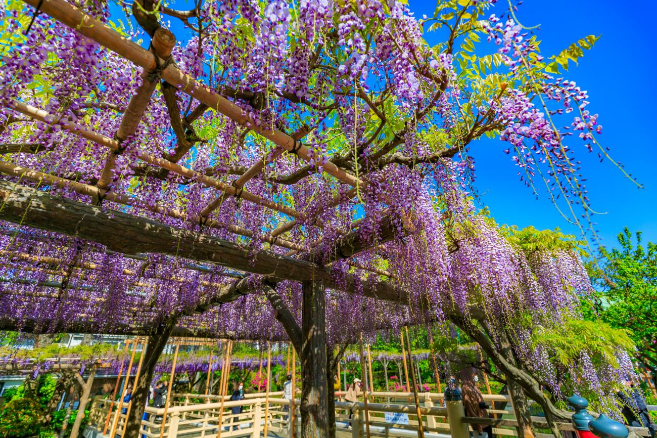 Là một trong những ngôi đền nổi tiếng nhất khi nhắc đến đường hầm hoa tử đằng Nhật Bản, Byakugoji Temple mang đến trải nghiệm vừa linh thiêng, vừa thơ mộng. Khi hoa nở, toàn bộ mái đền, cầu nối, các cây hoa tử đằng phủ kín như một chiếc áo choàng tím trong truyền thuyết.