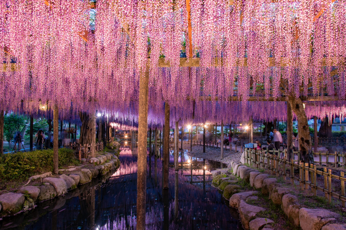 Trong khoảng thời gian này, các cây hoa tử đằng đều nở bông đẹp, tán lá rậm rạp, du khách có thể dễ dàng có những bức hình lung linh để làm kỷ niệm. Các địa điểm cũng tổ chức nhiều hoạt động lễ hội, trình diễn ánh sáng, giúp du khách vừa ngắm hoa, vừa tận hưởng không khí lễ hội đặc trưng của mùa xuân Nhật Bản.