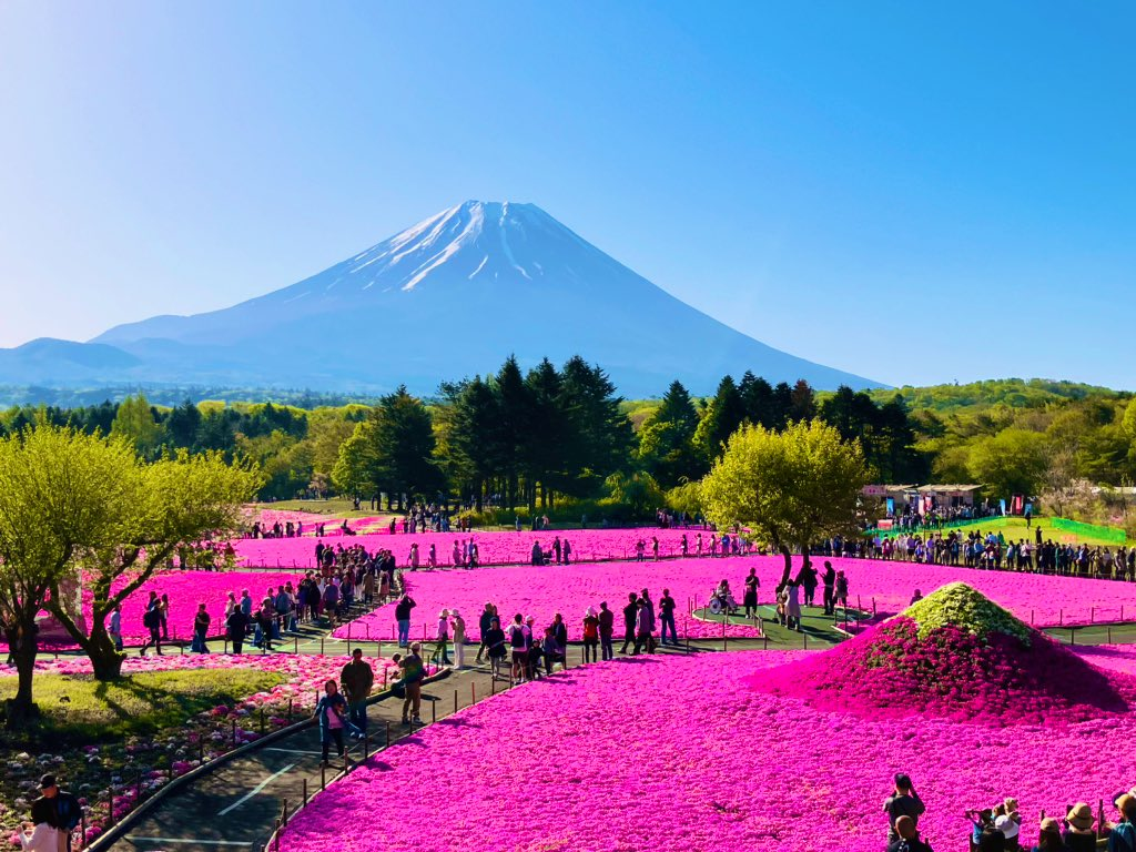 Hình ảnh núi Phú Sĩ đắm chìm trong biển hoa là một trong những “toạ độ sống ảo” nổi tiếng nhất của Nhật Bản. Các du khách đến đây không chỉ để thưởng ngoạn mà còn để chụp lại những bức hình “để đời”, thể hiện nét đẹp huyền bí, thi vị của đất nước mặt trời mọc.