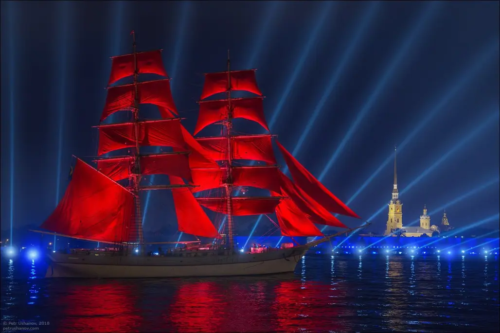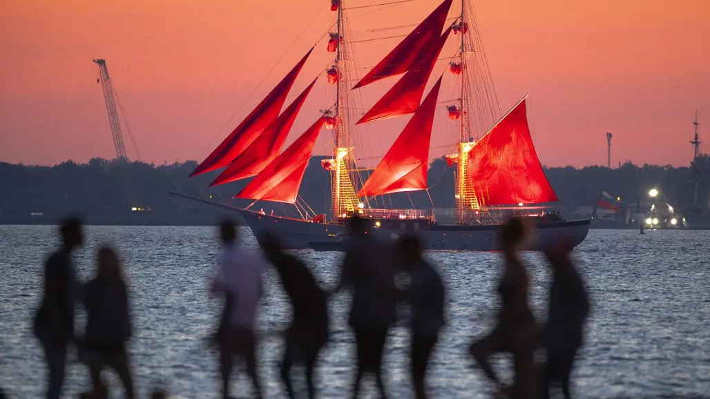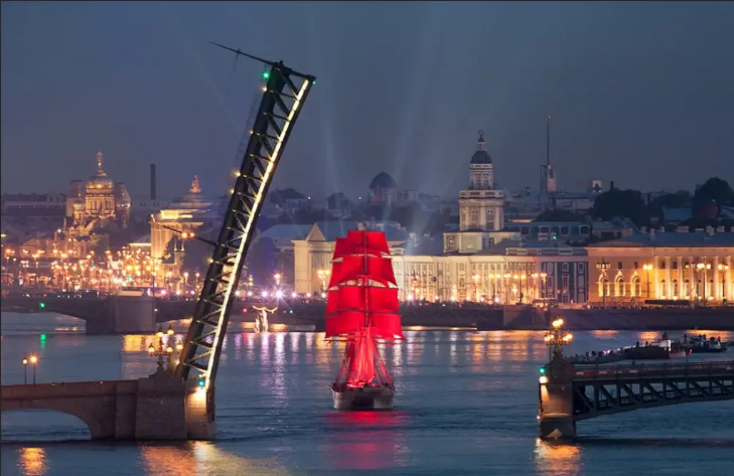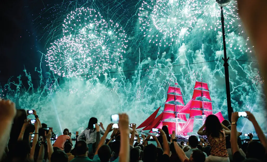 Nhắc đến mùa Đêm Trắng mà bỏ qua Scarlet Sails thì thật thiếu sót. Đây là sự kiện nổi tiếng bậc nhất Saint Petersburg, gắn với lễ tốt nghiệp học sinh và thường diễn ra vào cuối tháng 6, với điểm nhấn là con thuyền buồm đỏ xuất hiện trên sông Neva cùng pháo hoa và chương trình trình diễn quy mô lớn. Dù không phải lúc nào du khách cũng vào được khu vực trung tâm có vé mời, không khí chung của thành phố trong dịp này vẫn vô cùng náo nhiệt.