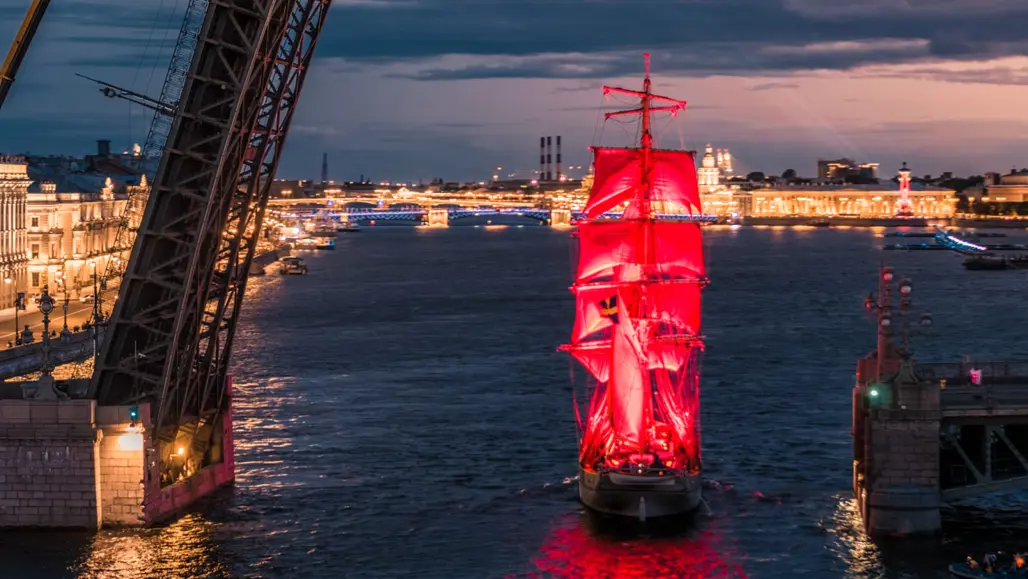 Saint Petersburg là thành phố nổi tiếng với hiện tượng đêm trắng vào cuối xuân và đầu hè, khi bầu trời gần như không tối hẳn. Trong bối cảnh ấy, lễ hội Cánh Buồm Đỏ Thắm càng trở nên huyền ảo hơn, mặt nước sông Neva phản chiếu ánh sáng thành phố, những cây cầu lịch sử mở nhịp giữa đêm, và cả không gian như biến thành một sân khấu ngoài trời khổng lồ. Đây là lý do nhiều người xem Scarlet Sails Russia là khoảnh khắc đẹp nhất để cảm nhận Saint Petersburg theo cách lãng mạn nhất.