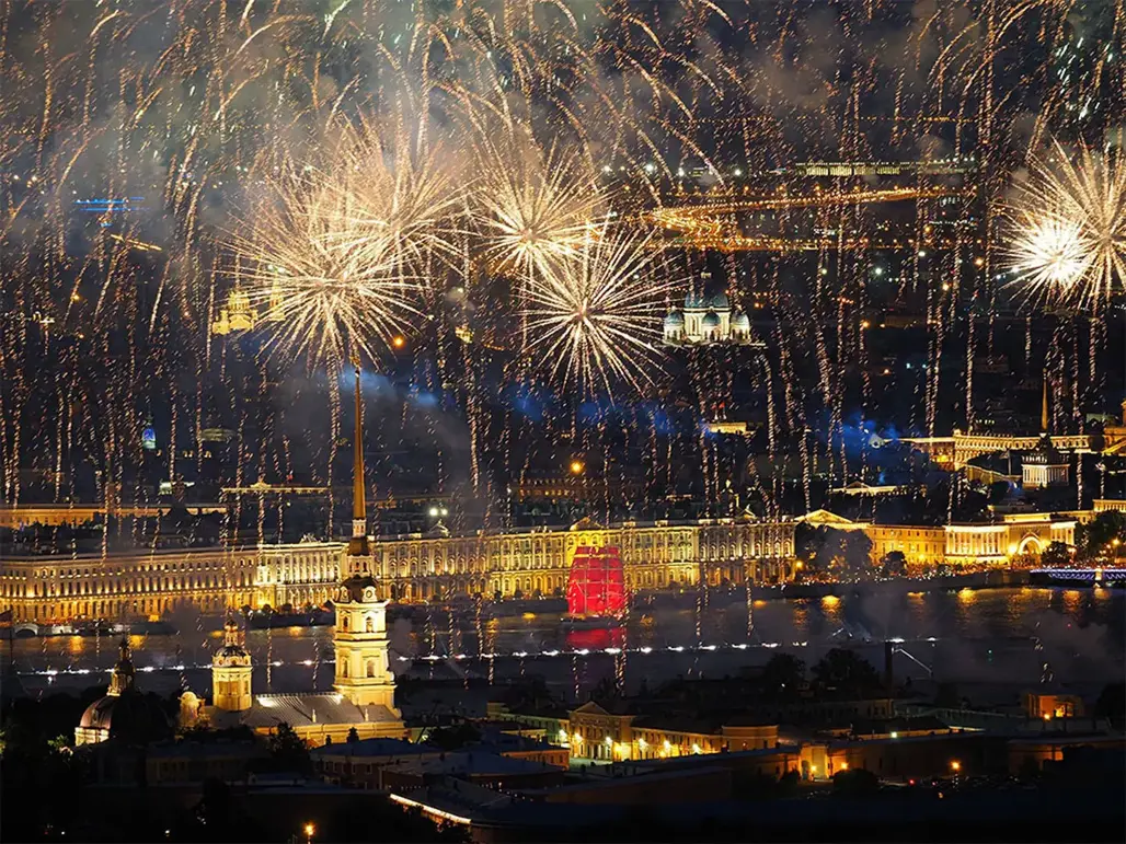 Với nhiều du khách, phần đáng mong chờ nhất trong lễ hội Cánh Buồm Đỏ Thắm là màn pháo hoa Saint Petersburg phản chiếu trên sông Neva. Khác với những màn pháo hoa thông thường, trải nghiệm ở đây được đẩy lên một mức cảm xúc khác nhờ bối cảnh đêm trắng, các công trình kiến trúc cổ kính ven sông và hiệu ứng sân khấu đồng bộ với tàu buồm đỏ. Chính sự kết hợp này giúp Scarlet Sails Russia trở thành một trong những hình ảnh mùa hè nổi bật nhất của Saint Petersburg trên truyền thông quốc tế.