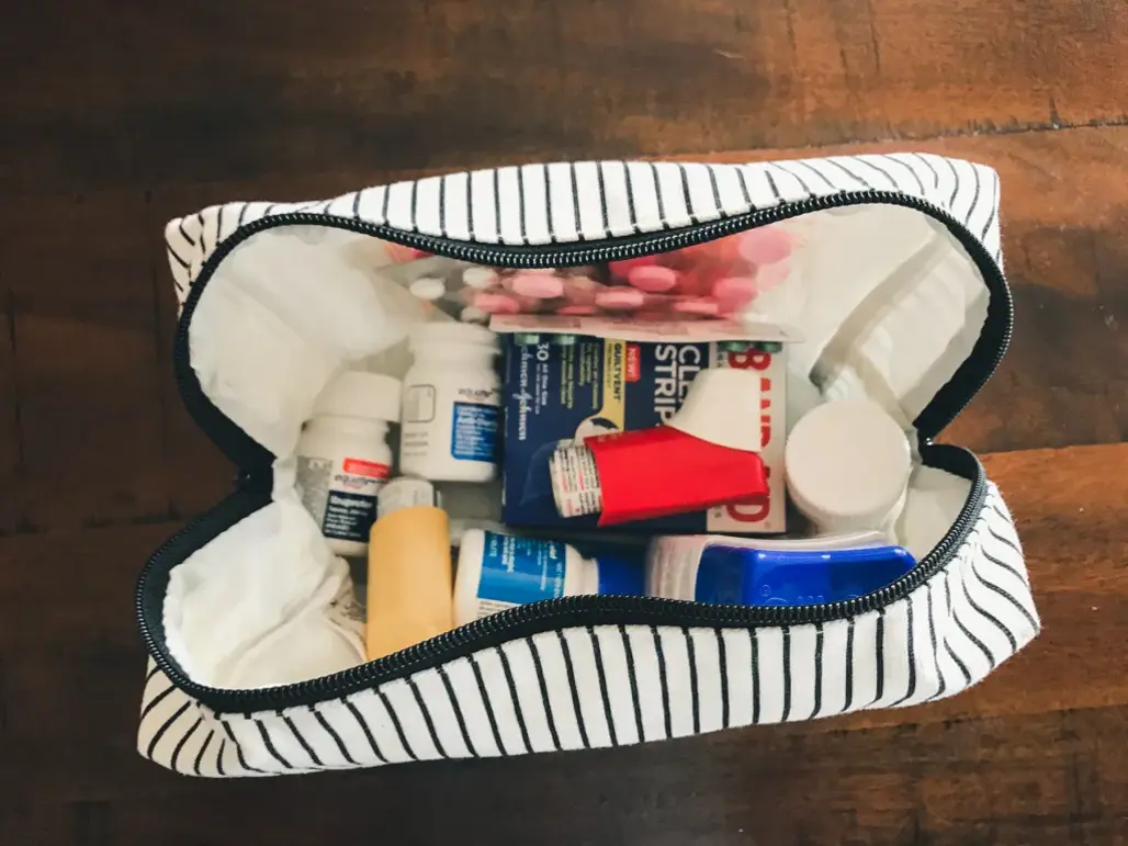 Trong hành lý của bạn không thể thiếu các loại thuốc cần thiết để xử lý các tình huống phát sinh như cảm lạnh, cảm cúm, đau đầu, đau bụng hoặc dị ứng. Thuốc cảm, thuốc hạ sốt, vitaminC, viên ngậm giữ ẩm cổ họng và thuốc nhỏ mắt là những sản phẩm nên luôn trong túi xách của bạn.