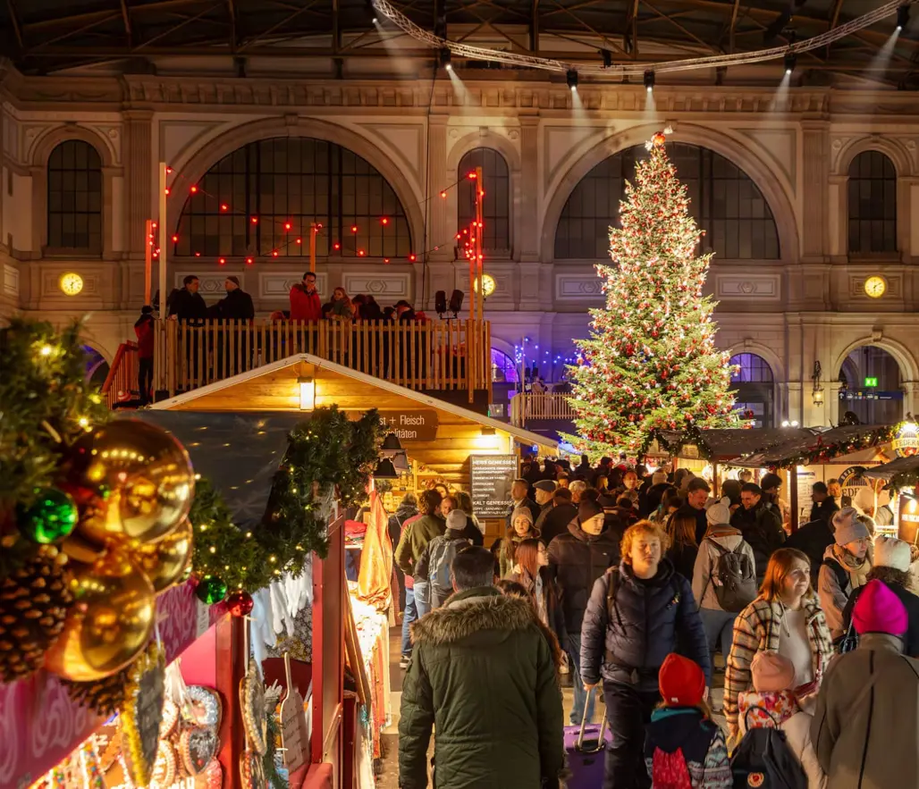 Chợ Giáng sinh là điểm nhấn của mùa đông ở cả châu Âu nói chung, và Thụy Sĩ nói riêng. Các gian hàng truyền thống bày bán đồ thủ công, quà lưu niệm, đặc sản địa phương, cùng không khí âm nhạc, ánh đèn lung linh tạo nên một cảnh tượng rực rỡ huyền ảo. Đi dạo qua những khu chợ này, du khách không chỉ chiêm ngưỡng vẻ đẹp của ánh sáng và trang trí Giáng sinh, mà còn có thể thưởng thức các món ăn đặc trưng của mùa lễ, như bánh quy gừng, nấm nướng, rượu vang nóng.
