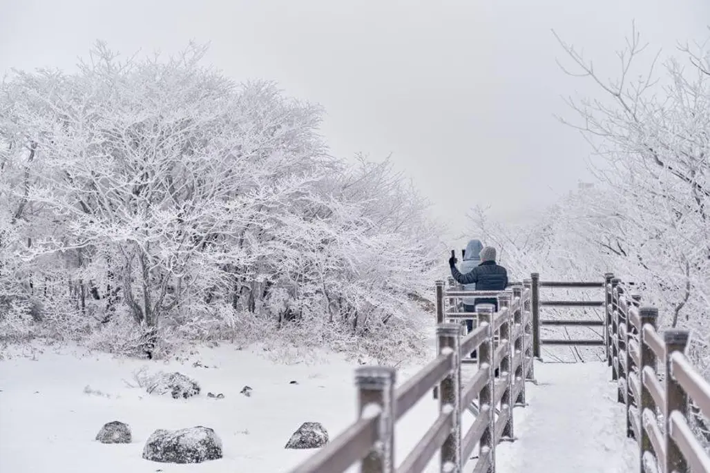 Khung cảnh tuyết trắng kỳ ảo trên núi Hallasan