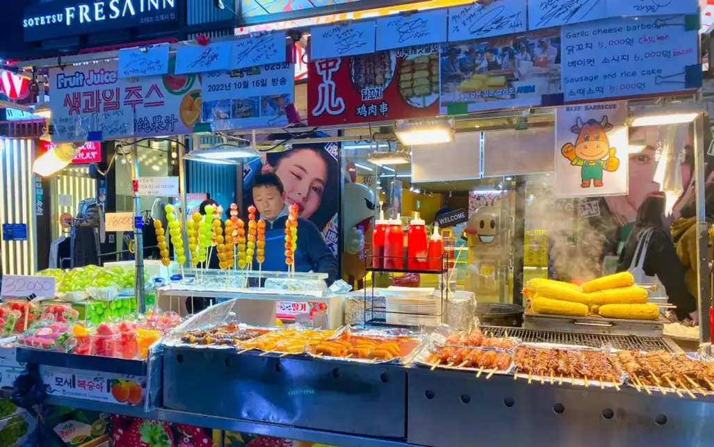 Chợ đêm ở Hàn Quốc là điểm đến lý tưởng dành cho những ai muốn thử các món đặc sản vừa ngon, vừa rẻ, lại có thể cảm nhận rõ nét về nhịp sống sôi động của người dân địa phương. Trong đó, chợ đêm Myeongdong nổi tiếng với những quầy bán thực phẩm đường phố xuất sắc như gà cay, bánh nếp, bánh gạo nướng, hoa quả tươi sống, các loại kem sữa mát lạnh và các món ăn vặt hấp dẫn khác.