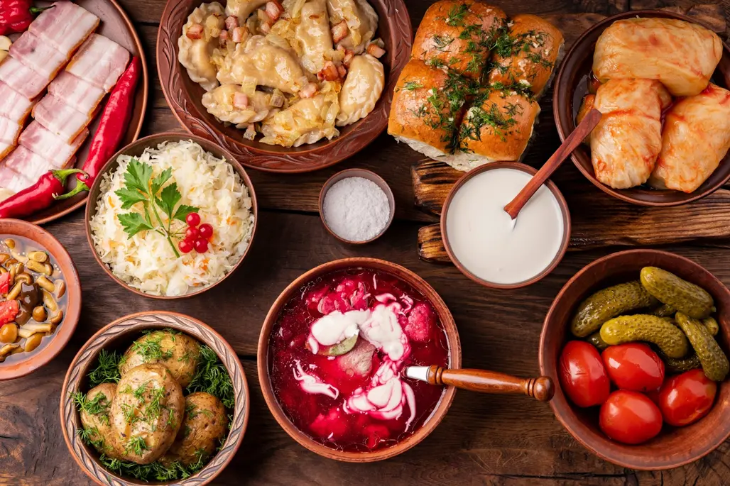 Giữ ấm không chỉ nhờ quần áo mà còn nhờ chế độ ăn uống hợp lý. Ẩm thực Nga vào mùa đông thường đậm vị và giàu năng lượng, giúp cơ thể duy trì nhiệt độ ổn định. Các món ăn truyền thống như súp củ dền đỏ (borscht), bánh mì đen, cá hồi nướng hay thịt hầm đều chứa nhiều dinh dưỡng, mang lại cảm giác ấm áp và no lâu.