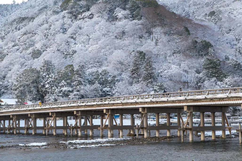 Cầu Togetsukyo từ lâu đã trở thành biểu tượng nổi bật của Arashiyama Kyoto, không chỉ vì kiến trúc đẹp mắt mà còn bởi ý nghĩa lịch sử sâu sắc. Đến với nơi này trong mùa đông, bạn sẽ cảm nhận rõ nét vẻ đẹp giao hòa của thiên nhiên, núi non, nước và ánh sáng đầu xuân nhẹ nhàng, thư thái.