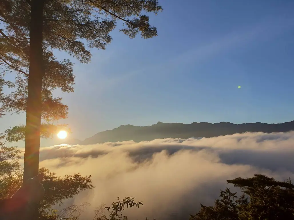 Một trải nghiệm đặc biệt khi du lịch Đài Loan tại Alishan mùa xuân đó chính là săn biển mây và chiêm ngưỡng bình minh trên đỉnh núi. Từ các điểm ngắm cảnh, du khách có thể thấy biển mây bao phủ cả một vùng trời, tạo cảm giác như lạc vào chốn thần tiên. Đặc biệt, lúc bình minh ló dạng, ánh sáng vàng rực rỡ chiếu xuống biển mây, soi rọi những tầng mây, tạo nên khung cảnh kỳ ảo, huyền hoặc.