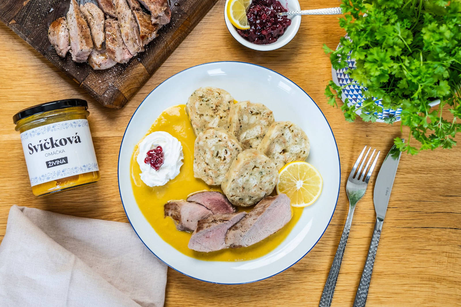 Svíčková là món ăn sang trọng nhưng đậm đà, thể hiện rõ nét vẻ đẹp của ẩm thực Cộng hòa Séc. Món chính gồm phần thịt bò mềm mại, được ướp chế biến kỹ lưỡng, ăn kèm với sốt kem bạc hà hoặc sốt kem cà rốt, tạo nên sự hòa quyện hài hòa về màu sắc và hương vị. Thường đi cùng với bánh mì hoặc bánh quẩy, món này phù hợp với những bữa tiệc trang trọng hay công cuộc thưởng thức ẩm thực tinh tế.