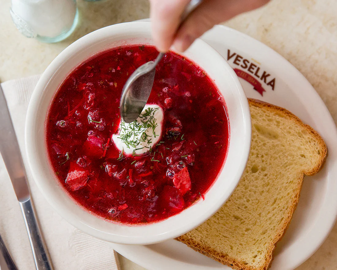 Borscht là món súp nổi bật của các quốc gia như Ukraina, Nga, Ba Lan và Cộng hòa Séc. Đây là món ăn vừa truyền thống vừa rất phổ biến, khác biệt hoàn toàn về màu sắc và hương vị so với các loại súp thông thường. Màu đỏ rực rỡ từ củ dền, kết hợp cùng các loại rau củ, thịt hoặc cá, tạo nên một món canh vừa đẹp mắt, vừa giàu dinh dưỡng.