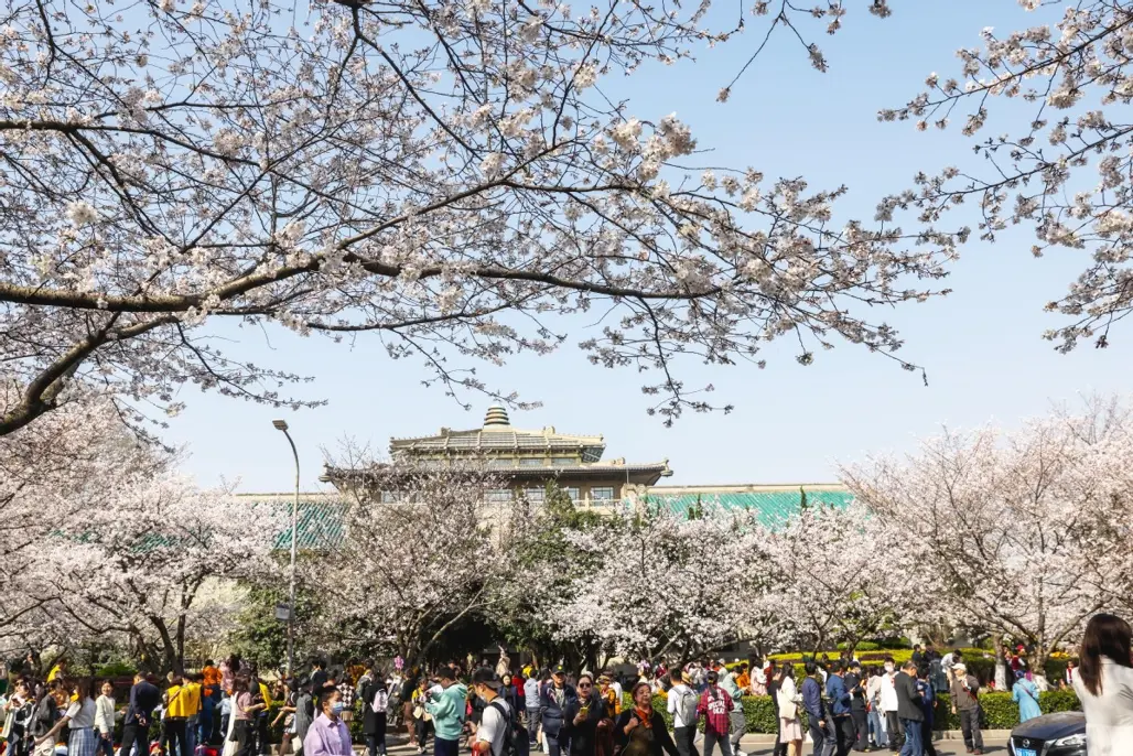 Với hàng nghìn cây hoa anh đào phủ khắp sân trường, đại học Vũ Hán trở thành nơi check-in yêu thích của sinh viên và du khách. Vào mùa xuân, các tòa nhà cổ kính, bảng hiệu học thuật nổi bật giữa sắc trắng hồng của hoa anh đào mang lại cảm giác vừa hiện đại, vừa truyền thống.