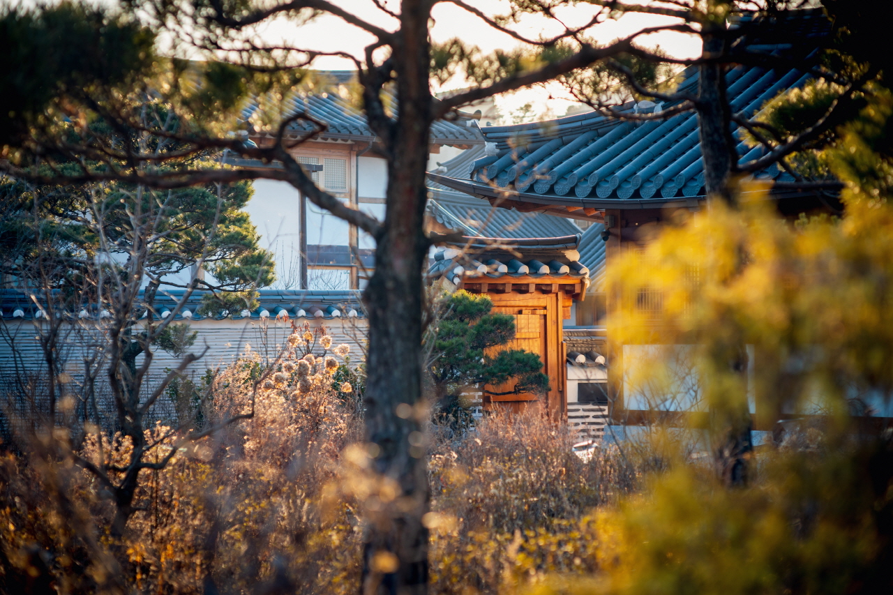 Sự giao thoa giữa kiến trúc hanok và sắc hoa xuân