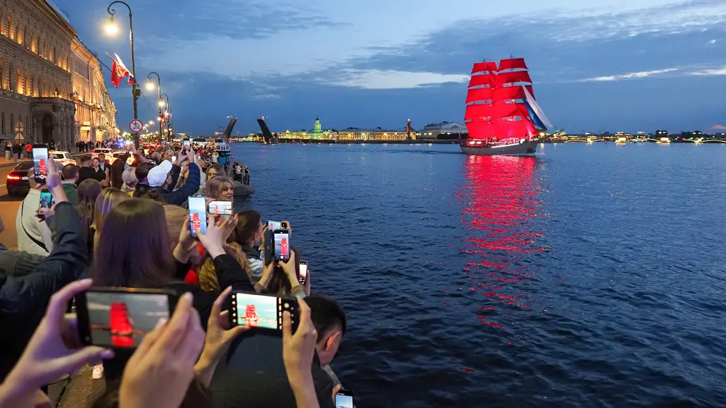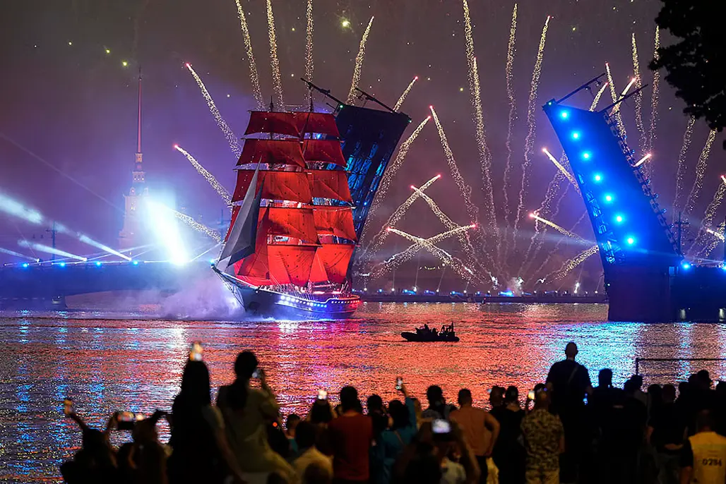 Nhắc đến mùa Đêm Trắng mà bỏ qua Scarlet Sails thì thật thiếu sót. Đây là sự kiện nổi tiếng bậc nhất Saint Petersburg, gắn với lễ tốt nghiệp học sinh và thường diễn ra vào cuối tháng 6, với điểm nhấn là con thuyền buồm đỏ xuất hiện trên sông Neva cùng pháo hoa và chương trình trình diễn quy mô lớn. Dù không phải lúc nào du khách cũng vào được khu vực trung tâm có vé mời, không khí chung của thành phố trong dịp này vẫn vô cùng náo nhiệt.