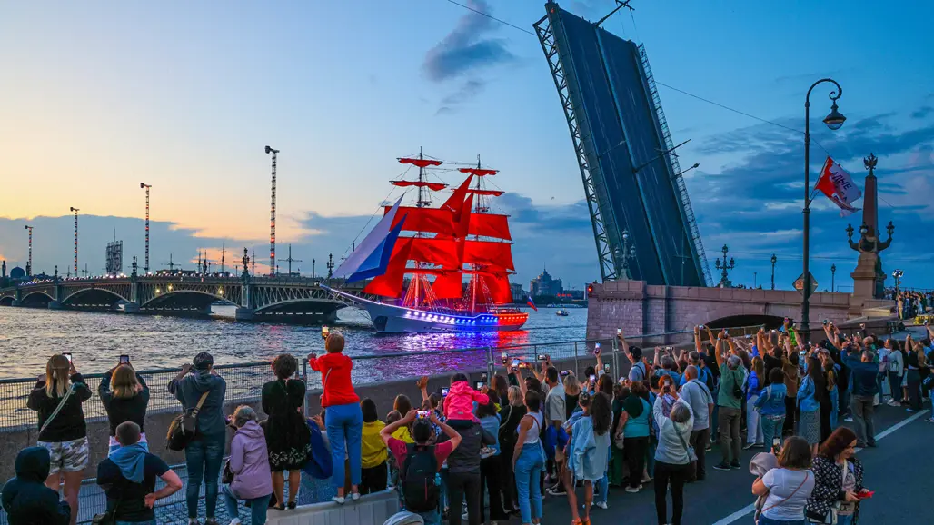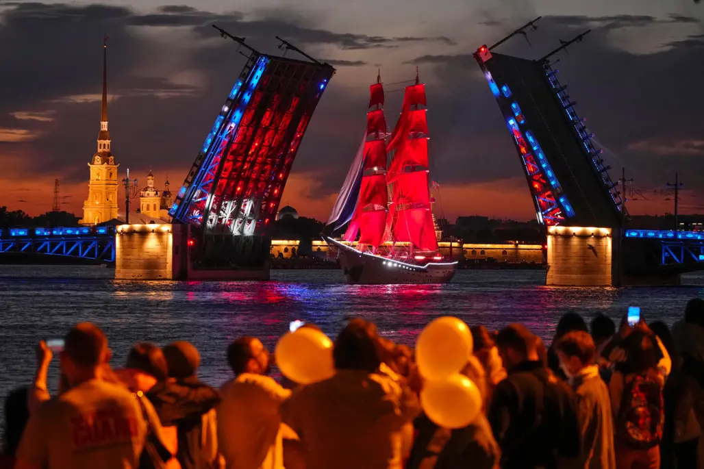 Saint Petersburg là thành phố nổi tiếng với hiện tượng đêm trắng vào cuối xuân và đầu hè, khi bầu trời gần như không tối hẳn. Trong bối cảnh ấy, lễ hội Cánh Buồm Đỏ Thắm càng trở nên huyền ảo hơn, mặt nước sông Neva phản chiếu ánh sáng thành phố, những cây cầu lịch sử mở nhịp giữa đêm, và cả không gian như biến thành một sân khấu ngoài trời khổng lồ. Đây là lý do nhiều người xem Scarlet Sails Russia là khoảnh khắc đẹp nhất để cảm nhận Saint Petersburg theo cách lãng mạn nhất.
