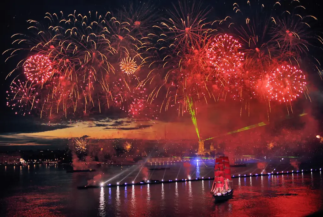 Nếu có một khoảnh khắc khiến mùa hè nước Nga trở nên huyền ảo đến nghẹt thở, đó chắc chắn là lễ hội Cánh Buồm Đỏ Thắm tại Saint Petersburg. Không chỉ là một đêm hội rực rỡ của ánh sáng, âm nhạc và cảm xúc, đây còn là biểu tượng đẹp của tuổi trẻ, ước mơ và những khởi đầu mới. Với khung cảnh đêm trắng nổi tiếng, màn pháo hoa Saint Petersburg bùng nổ trên sông Neva và con thuyền buồm đỏ thắm lướt qua giữa lòng thành phố, sự kiện này luôn được xem là một trong những trải nghiệm đáng nhớ nhất khi du lịch Nga mùa hè.