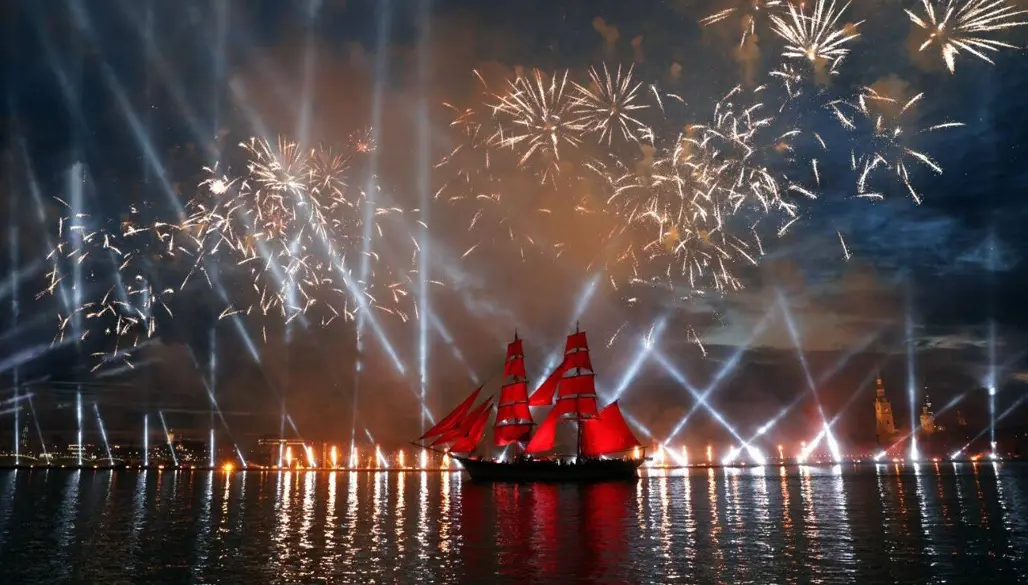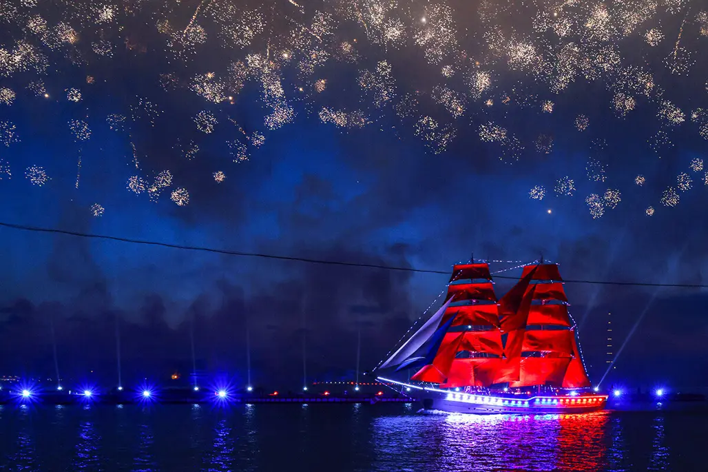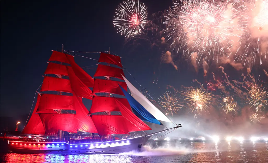 Scarlet Sails hay “Cánh buồm đỏ thắm” là lễ hội dành cho học sinh tốt nghiệp tại Saint Petersburg và đã trở thành một trong những sự kiện mùa hè nổi tiếng nhất nước Nga. Điểm nhấn của đêm hội là chương trình biểu diễn âm nhạc, ánh sáng, pháo hoa và khoảnh khắc con thuyền mang cánh buồm đỏ xuất hiện trên sông Neva giữa khung cảnh đêm trắng đặc trưng của thành phố.