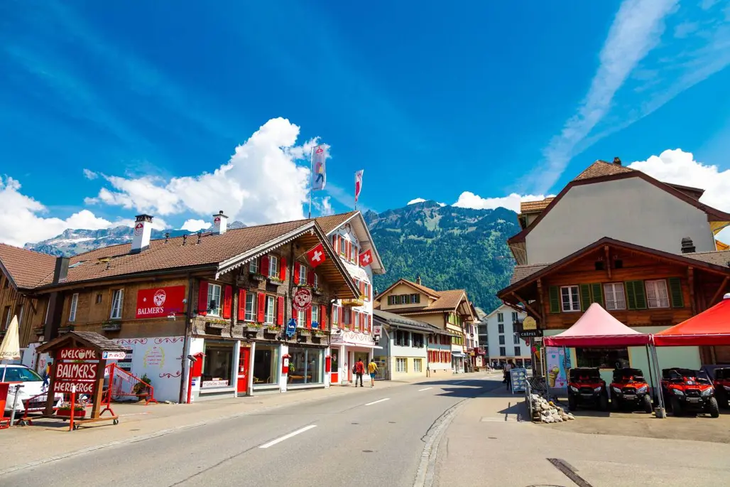 Trong hành trình trốn nóng Thụy Sĩ mùa hè, Interlaken mang lại cảm giác rất chữa lành với không khí trong lành, đường phố sạch đẹp, những ngôi nhà gỗ xinh xắn và khung cảnh Alps hiện ra ở mọi góc nhìn.