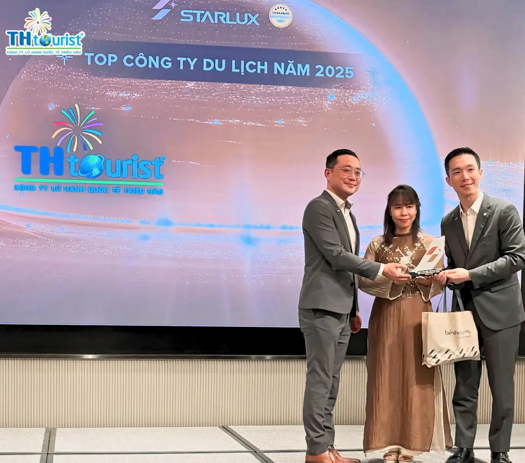 Ngày 14/01/2026, Du Lịch Triều Hảo vinh dự được STARLUX Airlines trao tặng giải thưởng Top Tour Operator 2025. Đây là sự ghi nhận quan trọng từ một hãng hàng không quốc tế uy tín, khẳng định vị thế, năng lực khai thác sản phẩm và mối quan hệ hợp tác bền vững của Du Lịch Triều Hảo trong lĩnh vực du lịch quốc tế