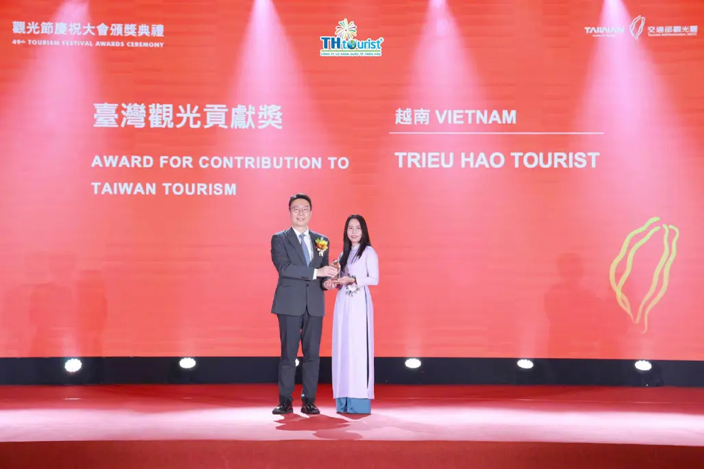 Du Lịch Triều Hảo tiếp tục ghi dấu ấn trên bản đồ du lịch quốc tế khi vinh dự trở thành 1 trong 3 doanh nghiệp lữ hành Việt Nam được trao giải “Award for Contribution to Taiwan Tourism” tại Taiwan Tourism Awards 2026. Giải thưởng do Tổng cục Du lịch Đài Loan tổ chức nhằm tôn vinh những đơn vị có đóng góp nổi bật trong việc quảng bá và phát triển thị trường du lịch Đài Loan trên toàn cầu.